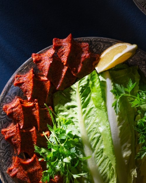 İri çekilmiş kıyma, soğan, iri ceviz, yöresel baharatlarla harmanlanarak taze olarak pişirilir, maydanoz ve limon ile servis edilir.