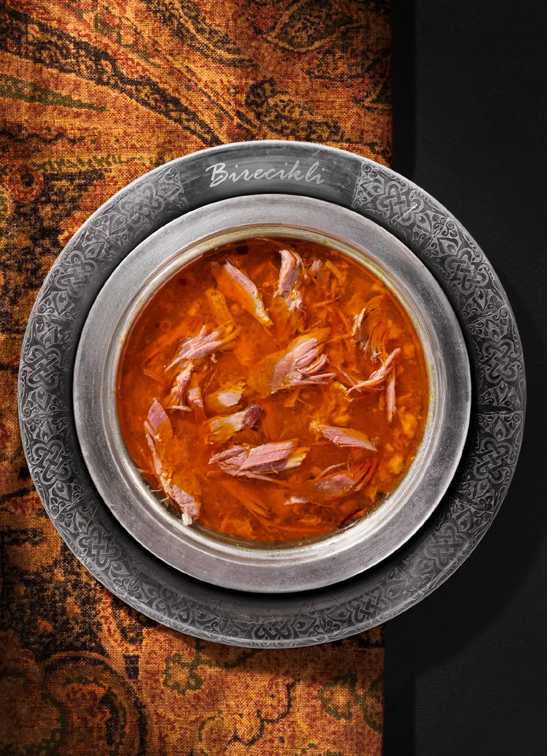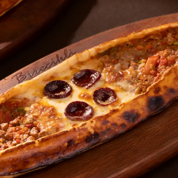 Özenle hazırlanmış ince hamur üzerine, hafif sarımsaklı ve soğan dengesiyle ayırt edilen Birecik usulü harçla hazırlanır.